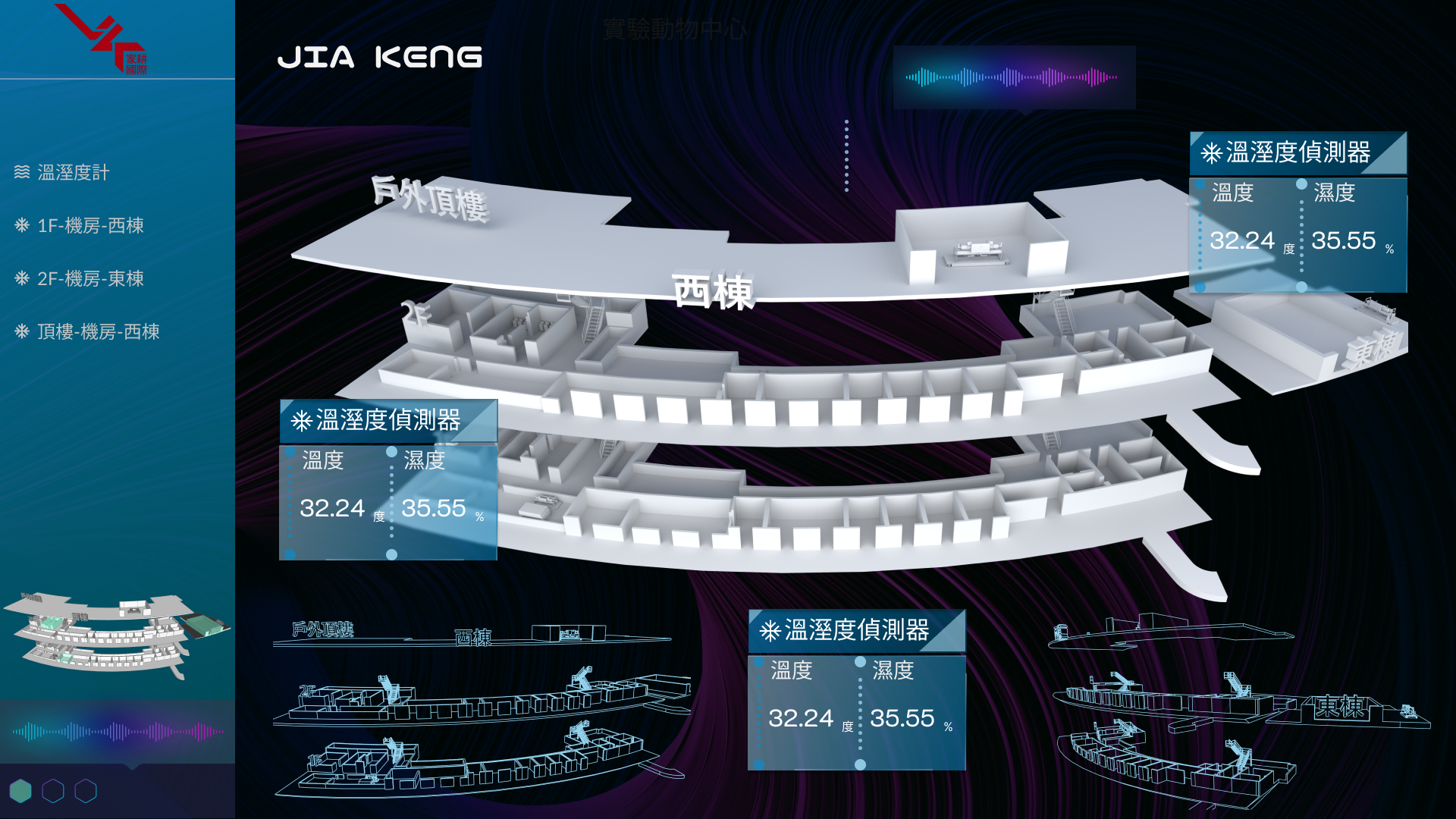 1. 電力與水力監測系統 電力監測:即時監控機房及廠區設備的電力使用情況,包括冰水主機、泵浦、冷卻水塔等。 水力監測:追蹤水泵及冷卻水塔的水流量、壓力及溫度等數據,幫助確保系統運行在最佳條件下。 2. 環境監控 監控室內外的溫度、濕度、空氣品質及其他關鍵環境參數,確保機房和廠區的運行環境達標。 通過傳感器網絡實時收集環境數據,進行設備狀況分析與預警。 3. 3D建模與可視化 3D環境建模:根據現場環境,繪製機房和廠區的3D模型,使用戶能夠直觀查看設備的位置和狀態。 動態數據疊加:將即時數據與3D模型結合,讓使用者能夠以可視化的方式,瀏覽每台設備的運行情況及相關數據。 4. 數據整合與分析 歷史數據記錄:保存長期的電力、水力及環境數據,供後期分析與優化策略制定。 自動報表生成:根據用戶需求自動生成設備運行情況報表,幫助快速評估節能效果。 數據AI的預測:利用數據進行預測分析,提供設備維護、節能策略等建議。 5. 客製化調整與擴展 根據不同機房和廠區的特殊需求,提供客製化配置,讓監控系統更貼近實際場景需求。 支援擴展至其他設備或環境監控,如空調系統或其他設施。